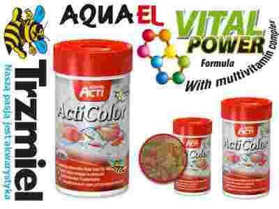 Pokarm ActiColor zawierające sprawdzoną mieszankę pokarmu Acti ActiMin oraz suszonych dodatków zwierzęcych, takich jak krewetki, rozwielitki, larwy ochotki, rureczniki oraz zooplankton w sprasowanej postaci dostarczającej rybom wszystkich niezbędnych witamin. ActiColor zawiera wszystkie niezbędne pierwiastki śladowe oraz witaminy, w tym stabilizowaną witaminę C. Niska zawartość fosforu – poniżej 1%. Wzmacnia układ odpornościowy i zapobiega awitaminozie. Jest łatwo przyswajalny i nie powoduje mętnienia wody.