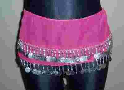 PIĘKNA CHUSTA DO TAŃCA BRZUCHA, PIĘKNY MATERIAŁ, WSPANIAŁY KOLOR - CIEMNO RÓŻOWA, KULECZKI, 2 RZĘDY SREBRNYCH MONETEK !