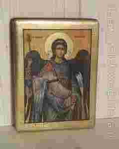 Nierówności są celowe i wraz z delikatną siatką spękań i patyny nadają stylowy charakter ikonie. Ten ciekawy efekt został osiągnięty dzięki własnej technice z udziałem transferu.