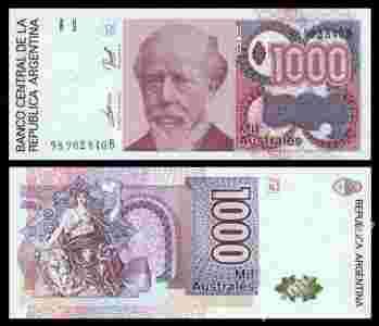 Argentyna 1000 Australes 1988-90 UNC. P-329c.