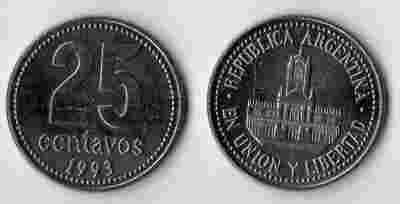 ARGENTYNA 1993 25 CENTAVOS