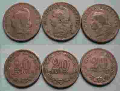 ARGENTYNA - 20 centavos 1930, 1939,1940.