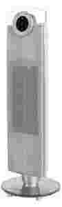 Charakterystyczną cechą tego ceramicznego termowentylatora jest cienka obudowa koloru srebrnego, umieszczona na bardzo eleganckiej i stabilnej