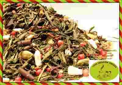 herbata china sencha, cynamon, płatki czekolady, skórka pomarańczy, imbir, kardamon, pieprz czerwony.