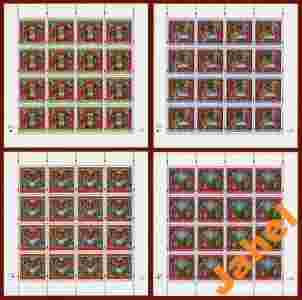 likwidacja zbioru Roczniki : parki, czwórki , arkusze bloczki itp. na oddzielnych aukcjach. arkusze 3[zasłonięte]721-37 BOŻE NARODZENIE do rocznik 2000 arkusze 16 znaczkowe (4x4) czyste **