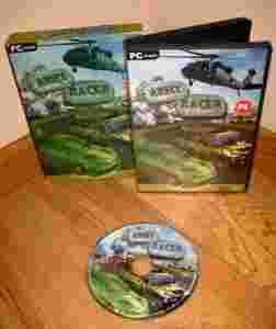OPIS GRY: ARMY RACER (polska wersja) -Drugi tytuł węgierskiej firmy 576 media, który zaistniał na rynku europejskim. Podobnie jak w przypadku poprzedniej pozycji Road To Fame, jest to zręcznościowa gra wyścigowa, lecz tym razem nasze zmagania mają miejsce na terenach różnych obiektów militarnych. Mowa m.in. o lotniskowcach, poligonach czy bazach wojskowych ulokowanych na teranie całego świata, w Japonii, Chinach, Rosji, Stanach Zjednoczonych, Anglii czy Hiszpanii. Na początku zabawy gracz ma możliwość wyboru jednej z ponad 30 postaci oraz narodowości (14 opcji), a ponadto otrzymuje najprostszy samochód. Wraz z postępami i wygrywaniem kolejnych wyścigów zarabia pieniądze, co pozwala mu na zakup lepszych modeli pojazdów (w sumie 20) oraz ulepszanie posiadanego auta. W sumie do wygrania czeka 60 wyścigów i choć są one dość krótkie, to za to bardzo dynamiczne i ekscytujące. W Army Racer możemy wybrać jeden z 3 trybów rozgrywki: zmagania z innymi, time trial oraz checkpoint time trial.