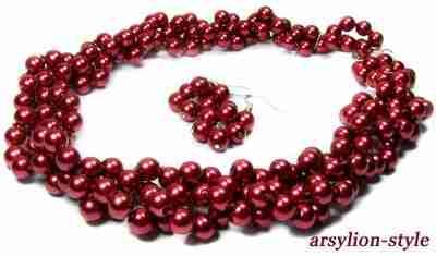 ARSYLION bordowy naszyjnik + kolczyki perły