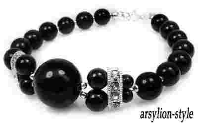 ARSYLION czarna bransoletka kamień onyks cyrkonie