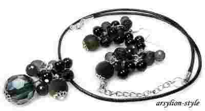 ARSYLION czarna zawieszka czarne kolczyki komplet