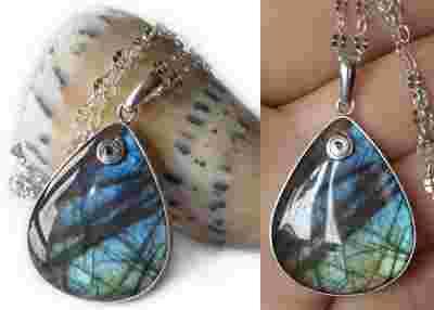 *ArteMariposa* dwustr. WISIOR LABRADORYT w srebrze