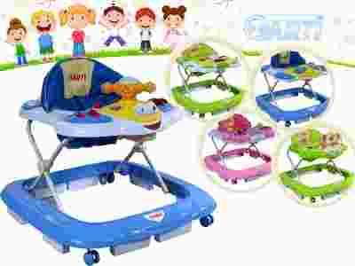 Chodziki wyposażony został w migające światełka, pozytywkę, oraz silikonowe blokady chroniące przed najechaniem na przeszkodę, bądź zsunięciem się ze schodka.