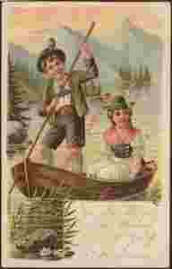 Artystycz. litho Alpy Para w łodzi