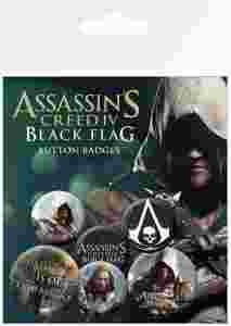 Zestaw sześciu kolorowych przypinek Assassins Creed 4 Black Flag dla dzieciaków i młodzieży.