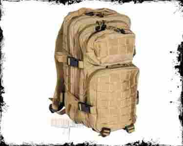 Wielozadaniowy plecak szturmowy, bardzo pakowny, wygodny i wytrzymały. Całość wykonana z wodoodpornego poliestru, grube podwójne szycia. Posiada 2 główne przegrody zamykane zamkiem błyskawicznym oraz 2 mniejsze przegrody na przodzie plecaka, również z zamkami. Plecak ma wyścielone gąbką plecy i szelki. Posiada regulowane długości szelek oraz pas biodrowy też regulowany. Posiada także różne zaczepy, uszka do mocowania drobiazgów.