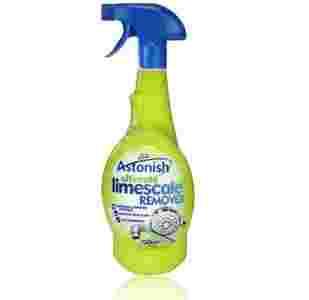 Skuteczny odkamieniacz w spryskiwaczu ASTONISH Limescale REMOVER usuwa kamień z twardych powierzchni w całym domu bez szorowania.