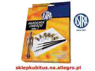 Zestaw do ćwiczeń i zabaw plastycznych ASTRA AKADEMIA OBRAZU. Zestaw zawiera: - panel malarski bawełniany o wymiarach 25,5 cm x 20 cm - drewniany manekin 15 cm - 6 kolorów farby olejnej Astra w tubach 12 ml - zestaw pędzli Astra nr 4, 6, 10 Wszystkie kolory farb olejnych można ze sobą mieszać. Kolory farb w zestawie: biała, żółta, czerwony, zielona, niebieska, czarna. Podczas malowania można także użyć farb Astra dostępnych na naszych aukcjach. Doskonały pomysł na oryginalny prezent - dziecko może samodzielnie wykonać obrazki do ozdobienia pokoju.