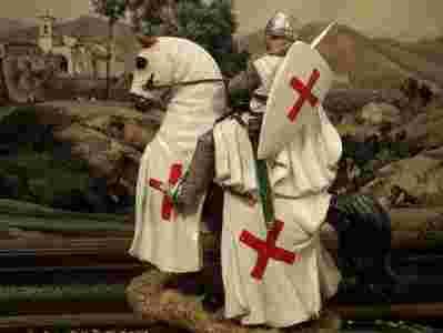 ATAKUJĄCY TEMPARIUSZ NA KONIU KRUCJATA ZAKON SALON