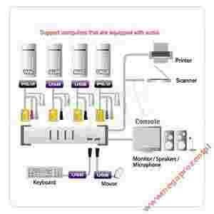 Przełacznik KVM obsługuje komputery różnych standardów jednocześnie np. MacOS,Linux, Windows czy Solaris. Wybór standardu PS/2 lub USB uzyskujemy poprzez odpowiedni kabel podłączeniowy. |
