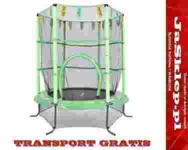 Trampolina domowa z siatką zabezpieczającą w kolorze zielonym o zewnętrznej średnicy 140 cm dla najmłodszych!!! Średnica maty do odbić ponad 100cm!!. Mata do odbić znajduje się na wysokości 38 cm.