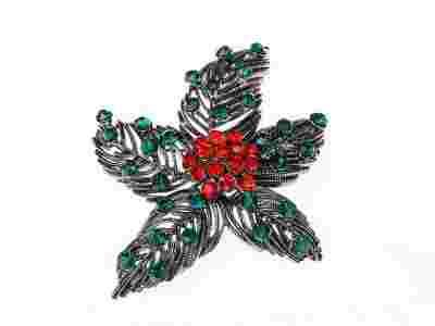 Atmosphere broszka pnacze lisc zielony czerwony