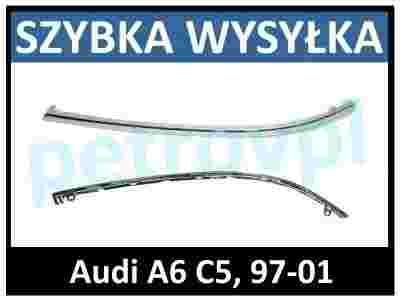 Audi A6 C5 97-01, Listwa zderzaka CHROM nowa LEWA