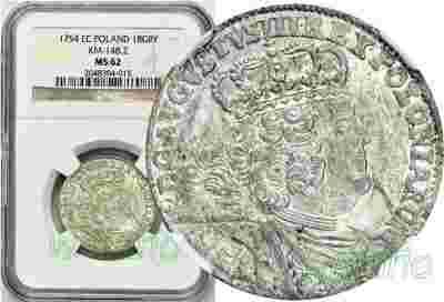 August III, Ort koronny 1754, menniczy, NGC MS62