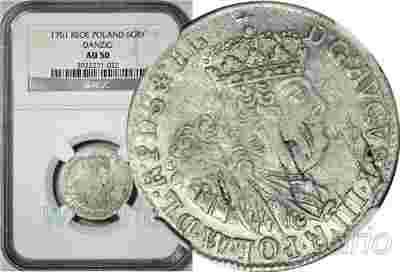 August III, Szóstak Gdańsk 1761, NGC AU50