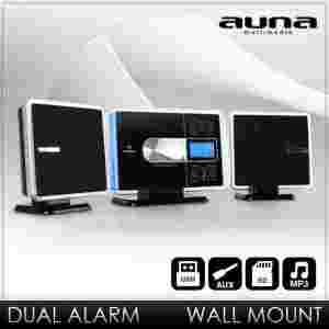 Dzieki wbudowanemu zegarowi z budzikiem (mozliwosc ustawienia dwóch alarmów) system Auna idealnie sprawdzi sie w sypialni. Duzy, stylowy i podswietlany na niebiesko wyswietlacz LCD oraz pionowo otwierajacy sie odtwarzacz CD, idealnie wpasuja sie w wystrój salonu.