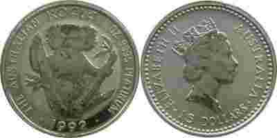 AUSTRALIA 15$ 1992 KOALA - PLATYNA STAN:I. G7