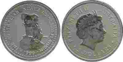 AUSTRALIA 5$ 1999 KOALA - PLATYNA STAN:I. G5