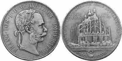 | Austro-Węgry - Franciszek Józef I - Okolicznościowa dwuflorenówka z roku 1887. Bity z okazji wznowienia wydobycia srebra w Kutnej Horze. Średnica kopii zgodna z oryginałem. |