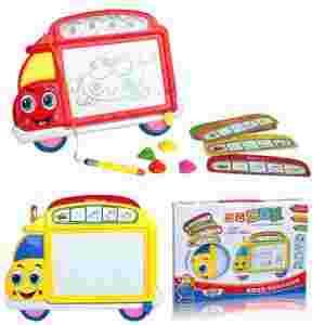 Tablica znikopis to polecany sposób na naukę rysowania i pisania. Kolorowa, zabawna, zachwyci kazde dziecko. Tablica w kształcie wesołego autobusu z kołami, zapakowana w wesołe pudełko. Autobus się uśmiecha i zaprasza do wesołej zabawy.
