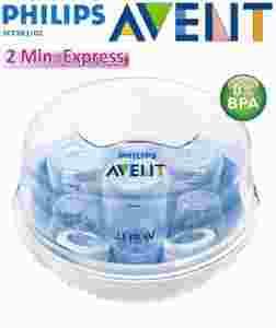 Sterylizator mikrofalowy Philips AVENT został dostosowany do większości mikrofalówek dostępnych na rynku. Dzięki niewielkim rozmiarom jest wygodny w podróży, zapewniając sterylne butelki zarówno podczas krótkiego wypadu, jak i podczas dłuższego wyjazdu na urlop.