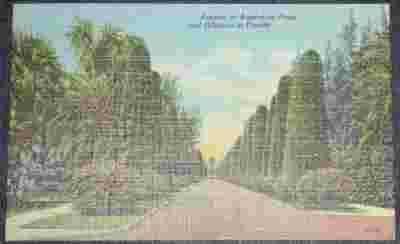 AVENUE OF AUSTRALIAN PINES AND HIBISCUS IN FLORIDA