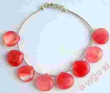 Bransoletka z kamieni syntetycznych kwarcu wiśniowego w kształcie łezki 15,00x15,00mm (bardzo ładny kwarc wiśniowy w charakterystycznych niejednorodnych kolorach, kamienie oszlifowane na połysk) i srebrnych przekładek na lince jubilerskiej.
