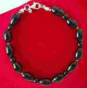 Bransoletka: beczułki naturalnych onyksów ok. 12,0x8,00mm i kuleczki ok. 6,30mm (piękny naturalny onyks w charakterystycznych czarnych kolorach, kamienie oszlifowane na połysk), srebrne przekładki próby 925 - na lince jubilerskiej.