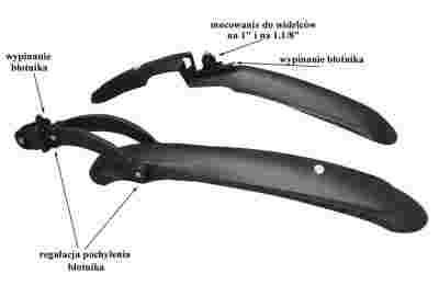 Do błotnika przedniego w komplecie są 2 zestawy mocowań do widelca o średnicy na 1" jak i do widelca na 1.1/8"