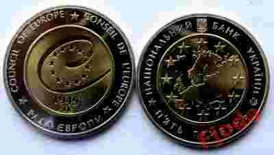 Ukraina - 5 hrywien z r. 2009 - 60 lat Rady Europy