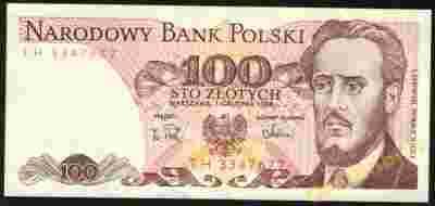 (B-24) 100 zł 1988 seria TH, magiczne 7, stan I-