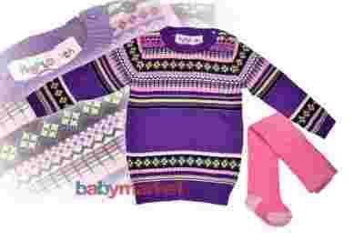 BABALUNO dzianinowa sukienka sweterek+rajstopy 110