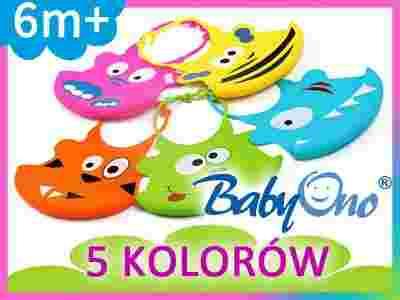 BABYONO SILIKONOWY ŚLINIAK Z NADRUKIEM I KIESZONKĄ