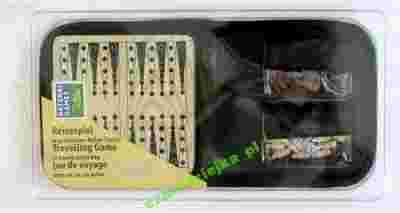 Backgammon (inaczej tryk trak) to gra losowo-strategiczna, której celem jest wprowadzenie swoich pionów do "bazy", a następnie zdjęcie ich z planszy, czyli wyprowadzenie z "bazy". O tym, jaki ruch można wykonać decydują rzuty kośćmi. Zwycięża ten z graczy, który zrobi to jako pierwszy. Prezentowany egzemplarz świetnie nadaje się na daleką podróż. Specjalne wgłębienia na planszy i dopasowane do nich pionki powodują, że po ich ułożeniu na planszy, nie rozsypują się podczas wstrząsów. Gra zapakowana jest w poręczne pudełko o wymiarach 145x135x25 mm.