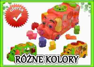 BAJECZNY SAMOCHÓD PIES KLOCKI SORTER DŹWIĘKI NAUKA