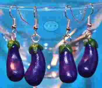 BAKŁAŻAN, modelina kolczyki wiszące handmade