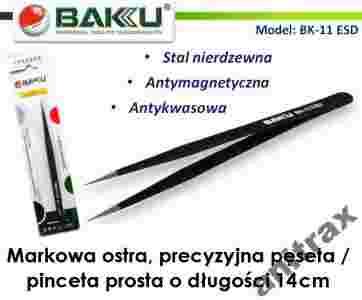 BAKU OSTRA PINCETA PĘSETA PROSTA dł 14cm BK-11 ESD