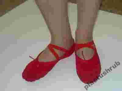 Baletki wykonane z gęsto plecionego materiału bawełnianego. Dodatkowo podszyte skórą naturalną w miejscach najbardziej narażonych: czubki palców oraz podeszwa. Wnętrze zostało wyłożone miękką wkładką w celu zwiększenia komfortu stopy. Dodatkowo wykończone są gumkami, po ich ściągnięciu idealnie dopasowują się do stopy.