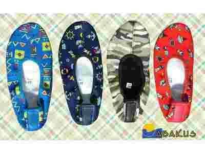 Wykonane z wytrzymałej dwusklejki bawełnianej, w środku wszyta miękka wkładka poprawiająca komfort użytkowania. Spód baletek wykonany ze skóry. Dodatkowo naszyta cienka warstwa antypoślizgowej pianki.