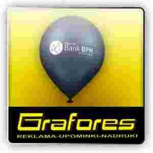 z nadrukiem jednokolorowym, jednym kolorem farby na wszystkich balonach, druk jednostronny.