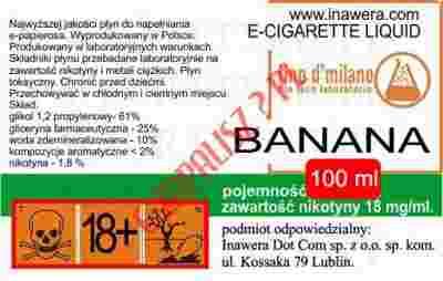 E-liquid o smaku bananowym. Producent: Inawera, seria: tino d'milano.