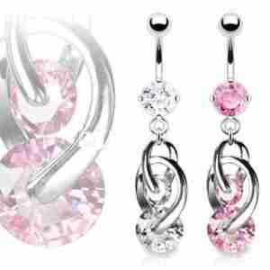 BANAN OZDOBNY DO PĘPKA DWIE KRYSZTAŁOWE KULE
